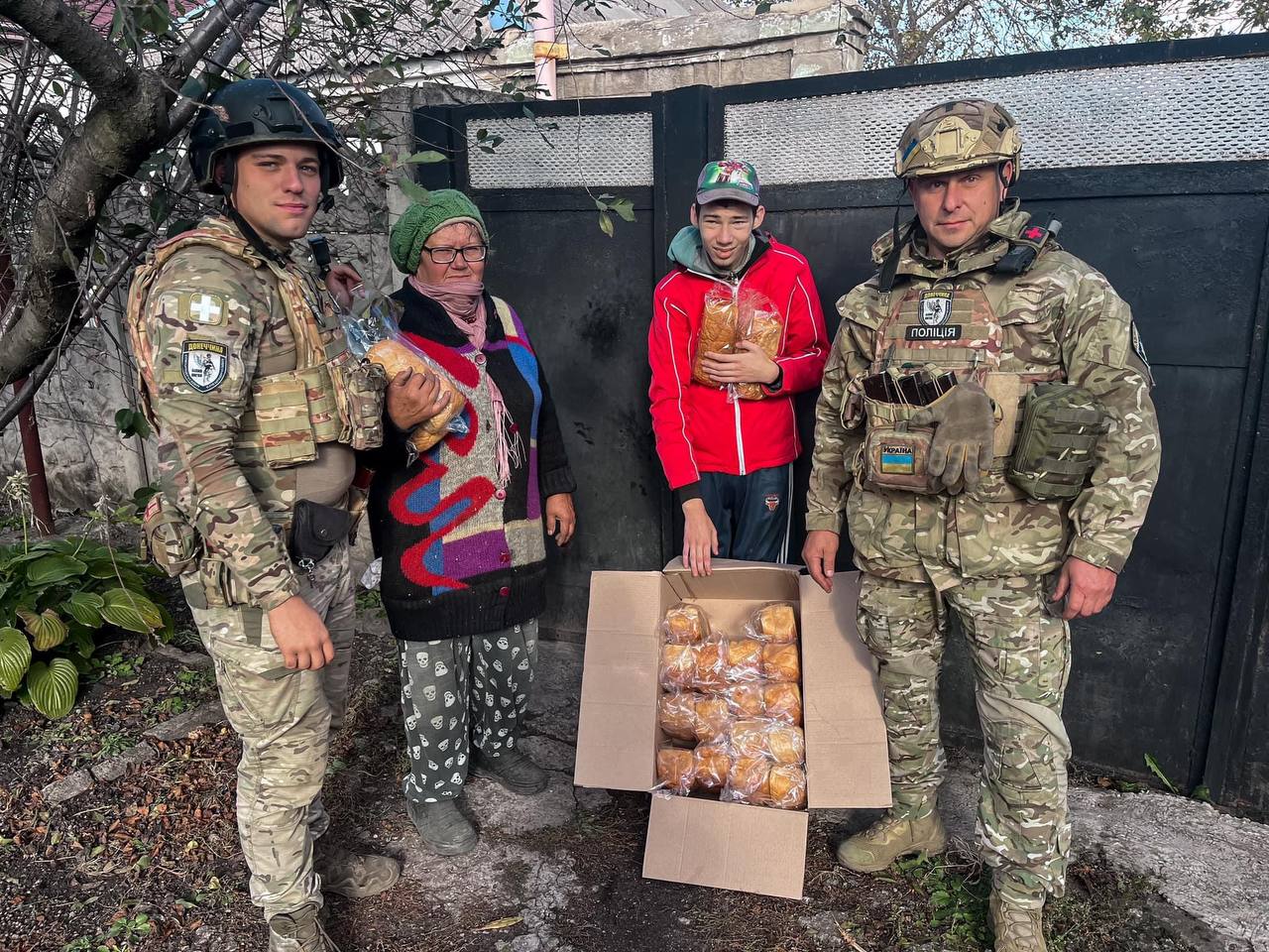 Мужественные полицейские подразделения "Білі янголи" развезли 1500 буханок свежего хлеба - людям и в больницу. Чтобы накормить людей, они каждый раз рискуют жизнью.