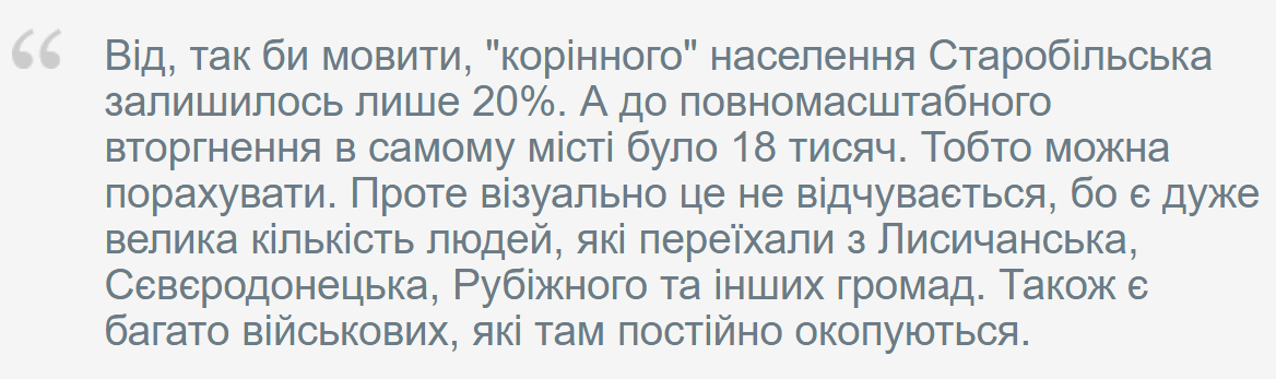 Напомним, глава городской военной администрации Яна Литвинова сообщала, что во временно оккупированном Старобельске пока остается лишь 20% населения, проживавшего в городе до полномасштабного вторжения России.