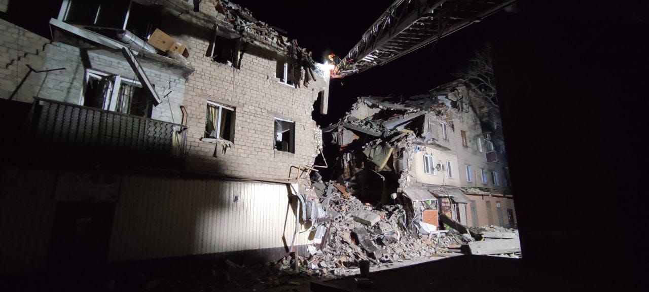 В Селидово Донецкой области вторые сутки продолжаются аварийно-спасательные и поисковые работы на месте частично разрушенного 4-этажного дома.