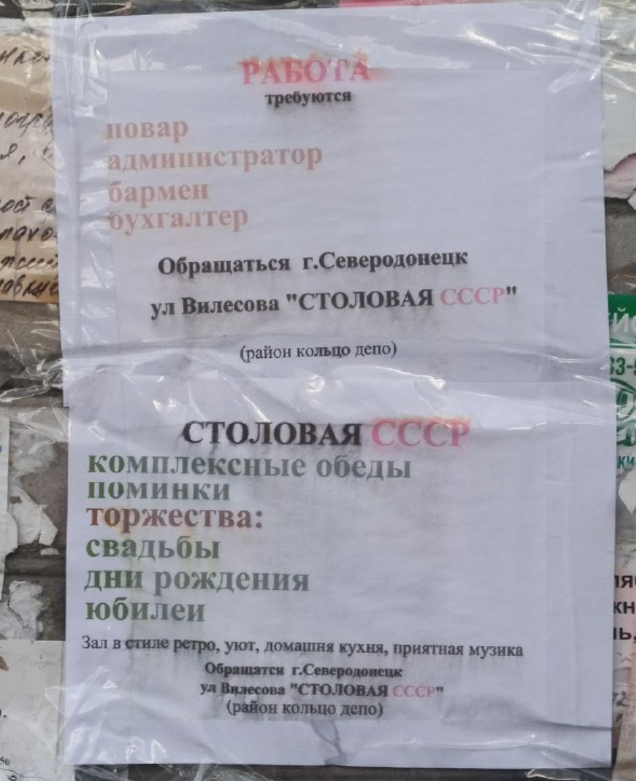 В городе, где раньше были магазины, кафе, рестораны теперь появилась "столовая" с названием "СССР".