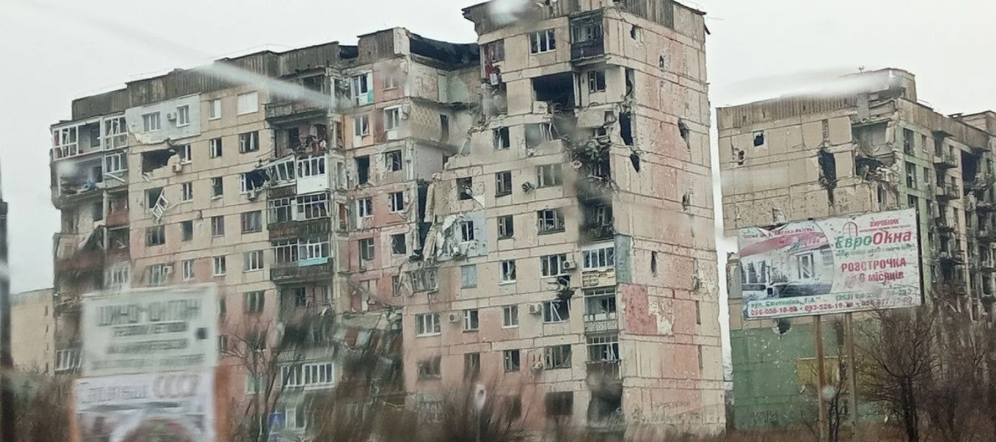 На кадрах показан дом, в котором продолжают жить обычные гражданские люди, семья, состоящая из двух человек. Один подъезд этого дома недавно обрушился.