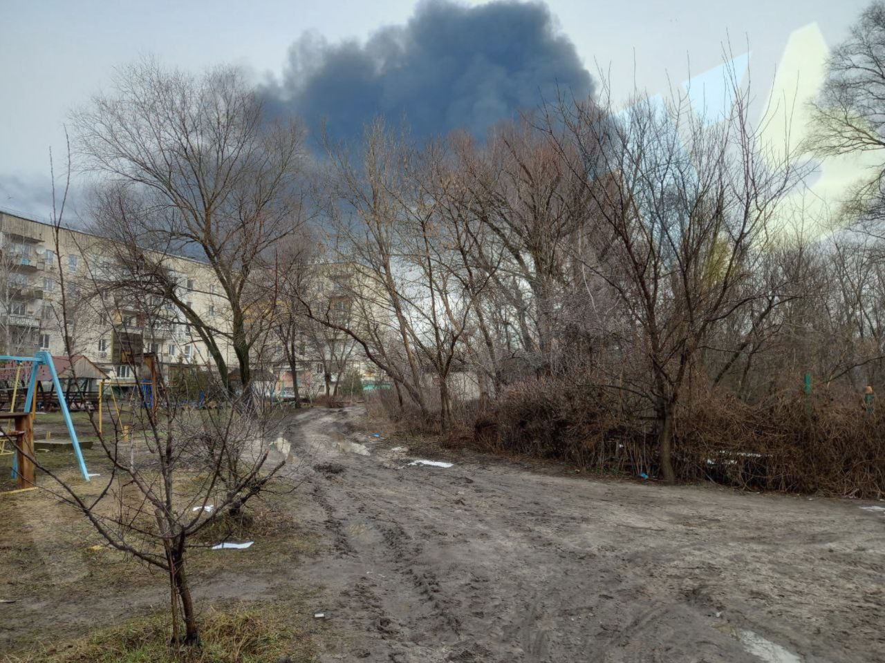 На кадрах видно, как черный дым поднимается над территорией фабрики, передает Час Пик.