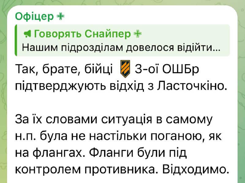 "Подразделениям пришлось отойти от села во избежание перекрытия логических путей и сохранения личного состава", - говорится в сообщении.