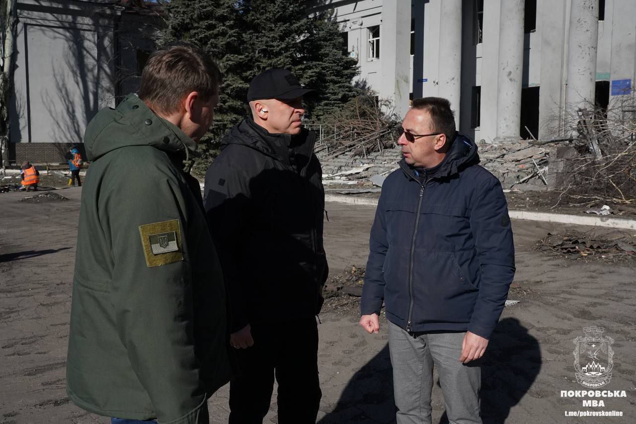 Уже успели оценить объемы разрушений и глава областной военной администрации Вадим Филашкин вместе с начальником Покровской ГОА Сергеем Добряком.