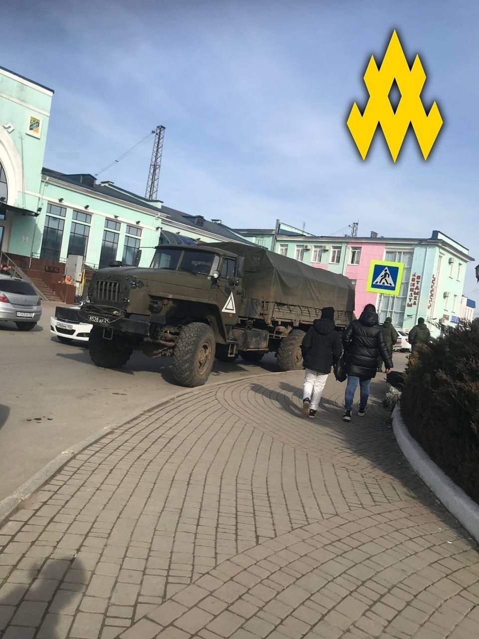 "Мы фиксируем доставку грузовых военных автомобилей на железнодорожную станцию города", — говорится в сообщении движения.