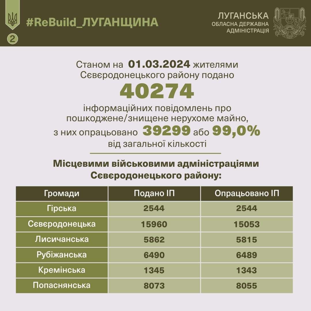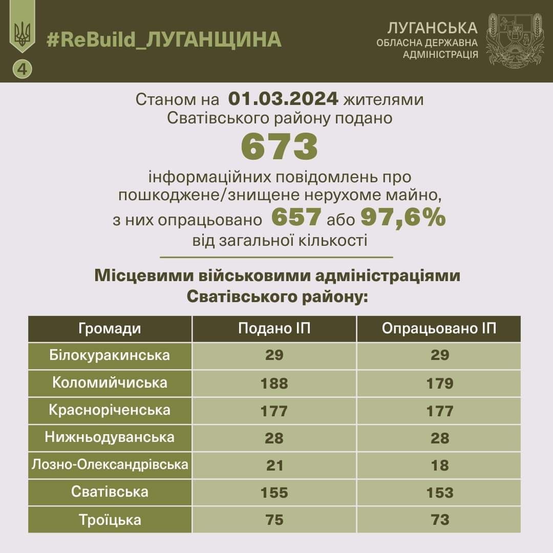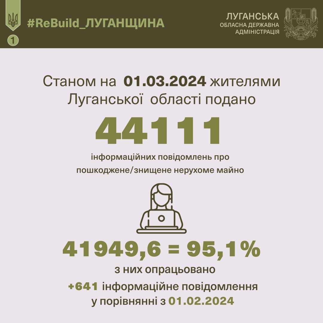 Более 640 сообщений о разрушении жилья подали жители Луганской области в течение прошлого месяца.