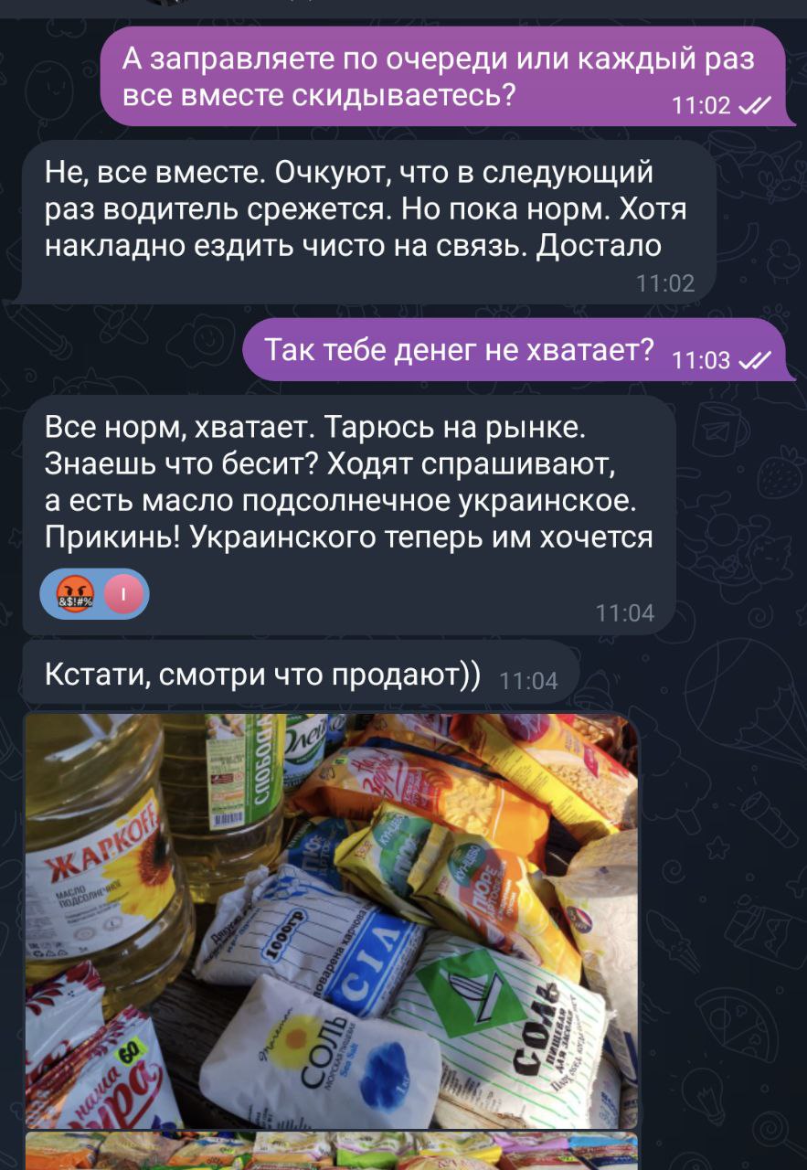 Также в сети обсуждают, что жители Северодонецка спрашивают на рынке украинское подсолнечное масло. А на прилавках магазинов можно встретить украинскую "Мивину" и соль.