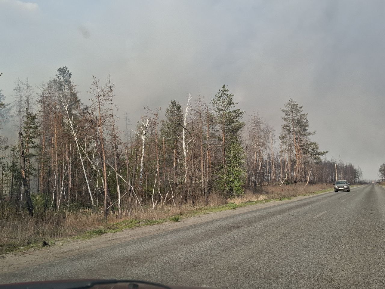 Так, по сообщению очевидцев, на выезде из Северодонецка горит сухая трава и лес.