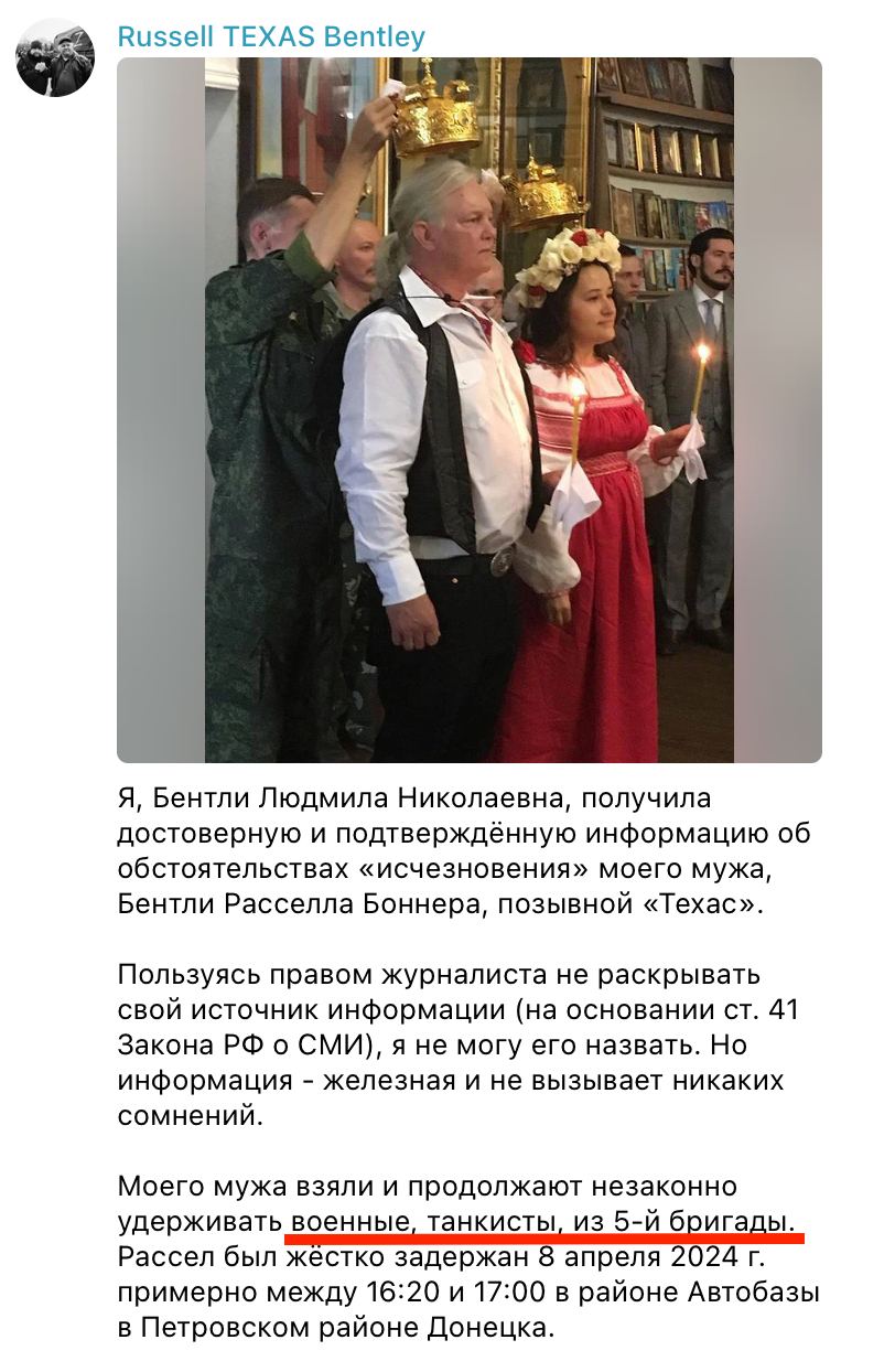 Кремлевский пропагандист не выходил на связь 8 апреля . Его жена заявила, что ее мужа похитили российские танкисты из 5-й бригады.