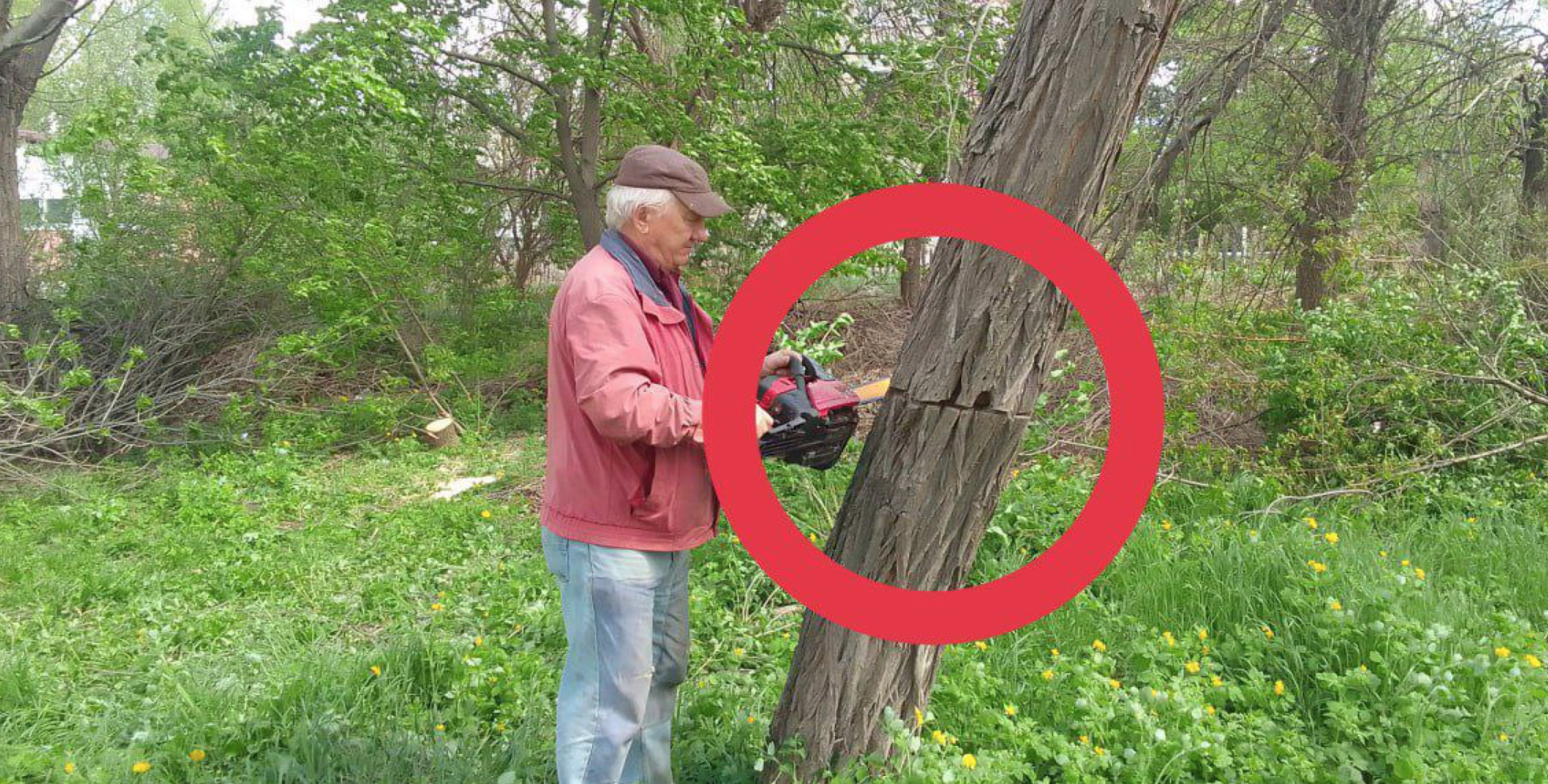 "Взять бензопилу, чтобы подержать и сделать рабочий вид. На третьем фото (красный круг) бензопила не работает, и дерево не пилили", - комментируют в сети.