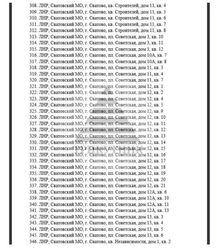 В оккупированном Сватово очен быстро отреагировали на "закон". Хватило месяца, чтобы проверить все квартиры (а ведь это должна делать специальная комиссия) и вынести "вердикт" - более 500 квартир будут отняты у законных владельцев.