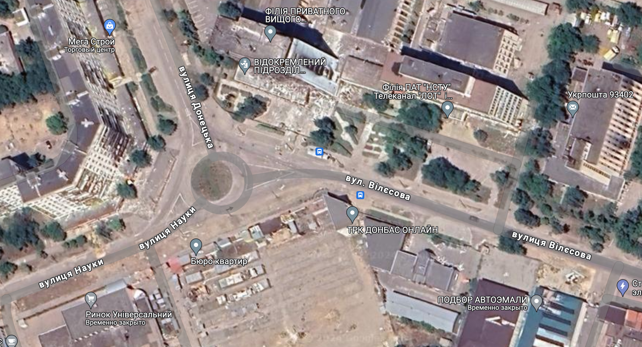 Час Пик проанализировал спутниковые карты Google. Снимки показывают, что в Северодонецке после обстрелов практически не осталось кафе или ресторанов, которые пользовались популярностью у жителей всего "треугольника".