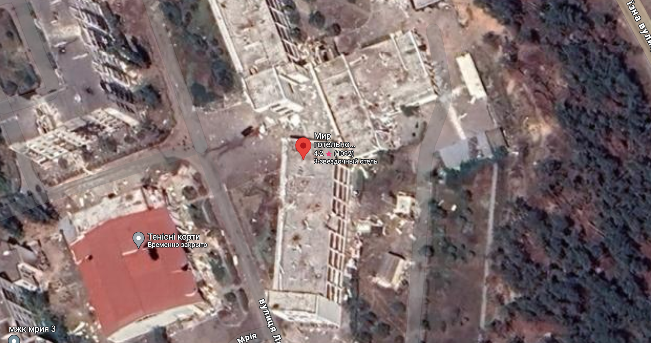 Заведение не такое популярное как "Шале" или "Соль", но тоже не безызвестное. От ресторана и домов, которые расположены рядом, остались только одни "скелеты". На спутниковых снимках видно, что завалы никто не разбирает. Разрушения настолько серьезны и масштабны, что трудно поверить в сегодняшнее "обличье" Северодонецка.