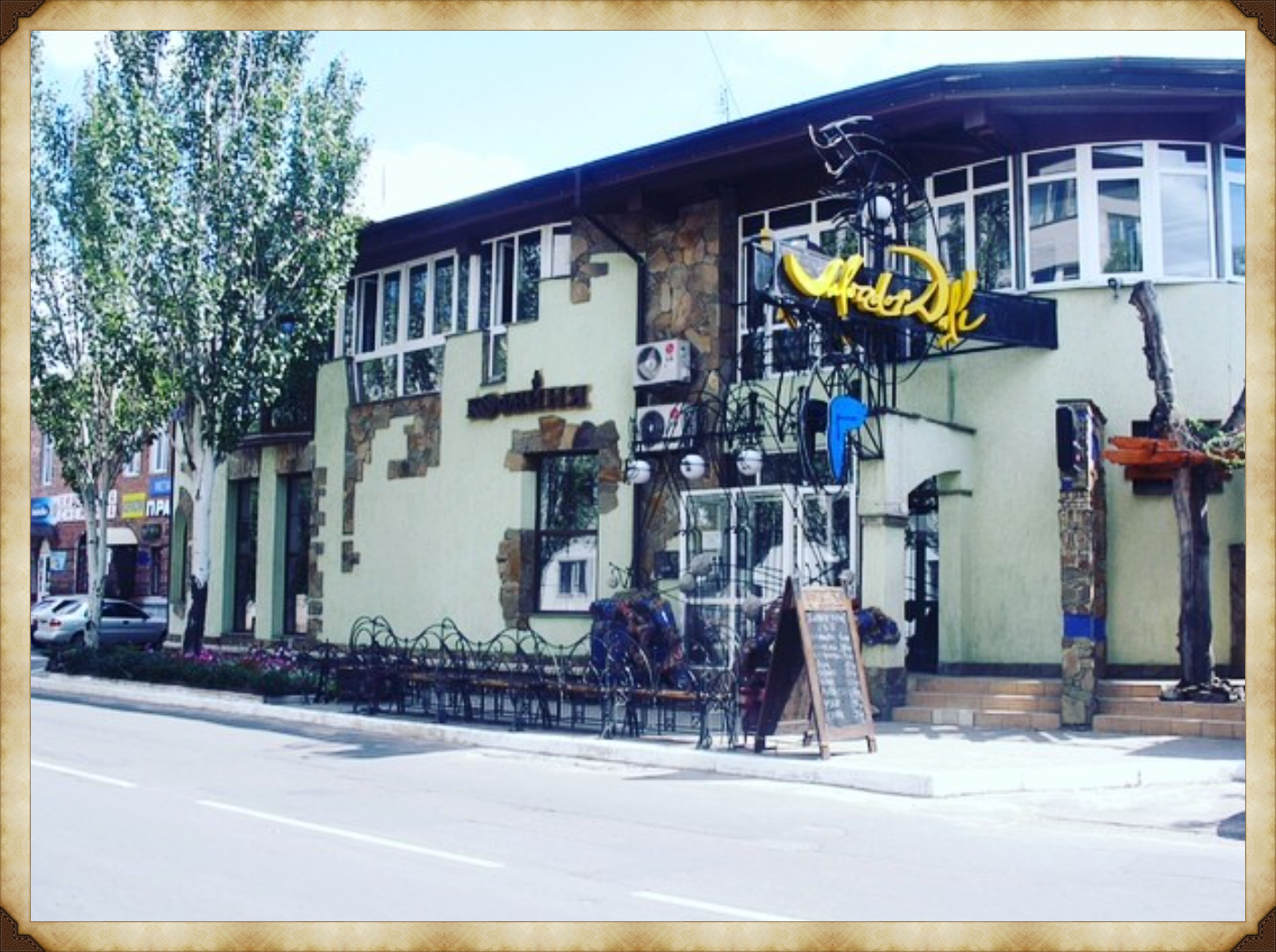 Популярное уютное заведение, в котором ранее работал также караоке-холл, сильно пострадало от обстрелов, как и весь район.