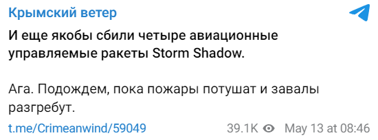 "Сегодня, в районе 6 утра несколько ракет (предположительно, Storm Shadow) атаковали в/ч 85683 на горе Ай-Петри в Крыму. На горе находится «секретная» военная база ПВО 3-го радиотехнического полка ВС РФ. В результате попадания ракет территория в/ч получила повреждения, погиб командир в/ч 85683 Александр Кулаков и еще один военнослужащий. Также есть раненые, их количество уточняется. В Минобороны РФ утром отчитались, что все ракеты были сбиты", - говорится в сообщении.