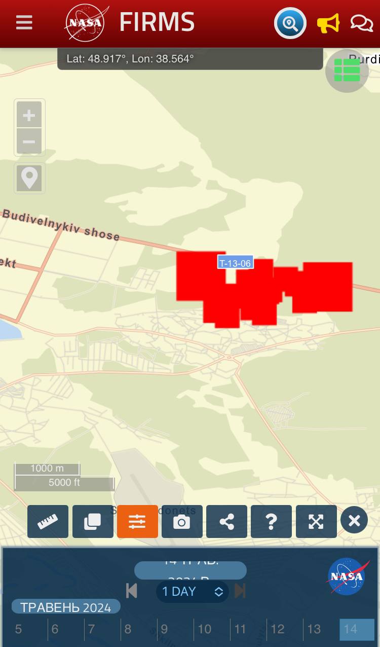 Пожар, который начался еще 5 мая, разгорелся сильнее. Сегодня спутники регистрируют ячейки огня уже в Метелкино. Есть угроза распространения пожара в направлении ЖК "Камелот" временно оккупированного Северодонецка Луганской области.