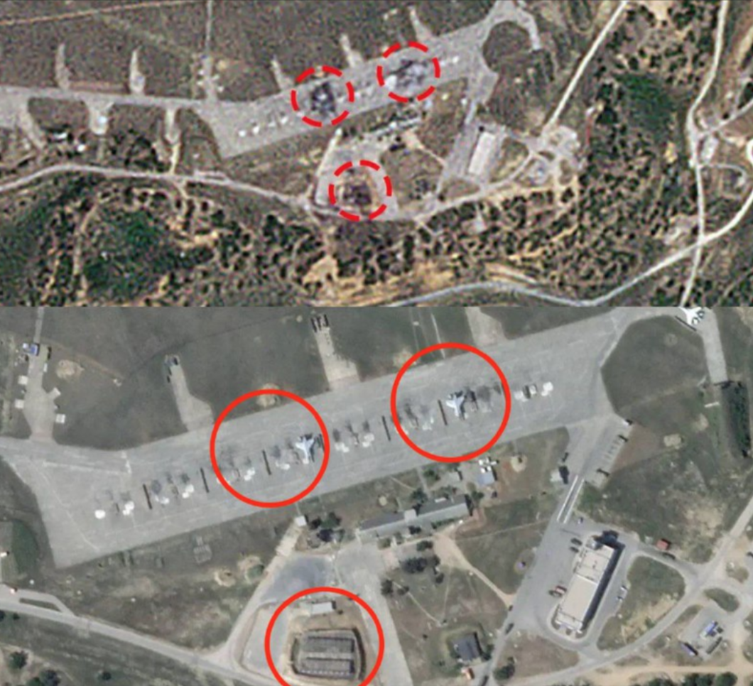 15 и 16 мая территория аэропорта "Бельбек" находилась под ударами. На спутниковых снимках зафиксированы следы пожара на нескольких местах, где в начале месяца находились самолеты. По мнению СМИ, снимки свидетельствуют о том, что могли быть повреждены или уничтожены минимум два самолета Миг-31.