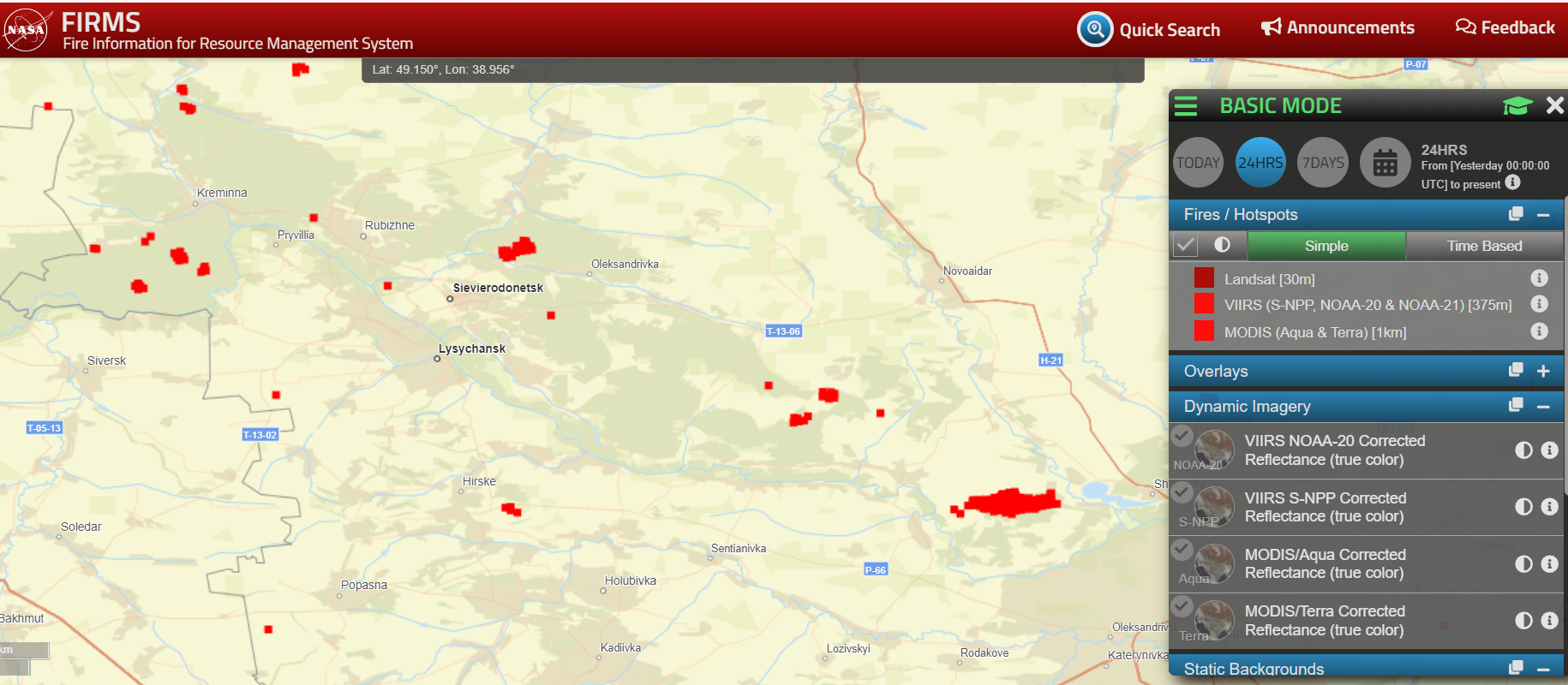 На оккупированной Луганщине сразу в двух районах масштабно горит сосновый лес - возле Станицы Луганской и Северодонецка - по состоянию на 27 мая. Об этом свидетельствуют спутниковые снимки NASA FIRMS.