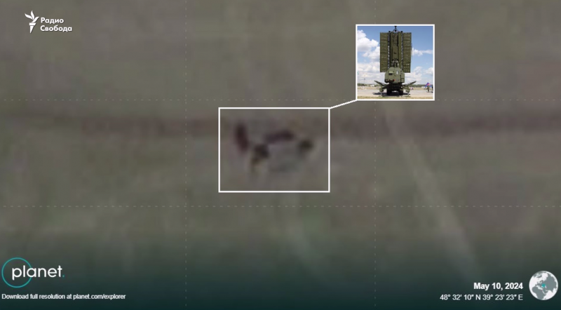 При этом на кадре от 10 мая на этой локации можно увидеть части радиолокационного комплекса "Небо-М", предназначенного для обнаружения аэродинамических и баллистических объектов на средних и больших высотах.