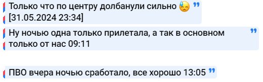 1 июня поступили сообщения о мощном ударе по центру Кременной. Ночью прилетел один снаряд, в то время как днем обстрелы были более интенсивными. "Система противовоздушной обороны сработала ночью".