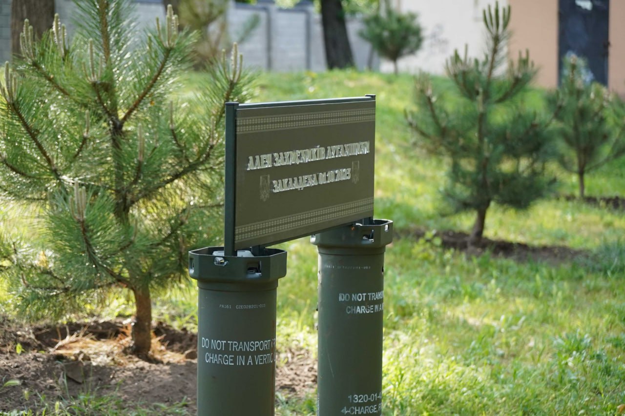 Два контейнера из-под 105-мм снарядов, которыми наши военные уничтожают врага под деоккупированным Невским, наполненные луганской землей, стали основой для памятного знака на Аллее Защитников Луганщины в Днепре.