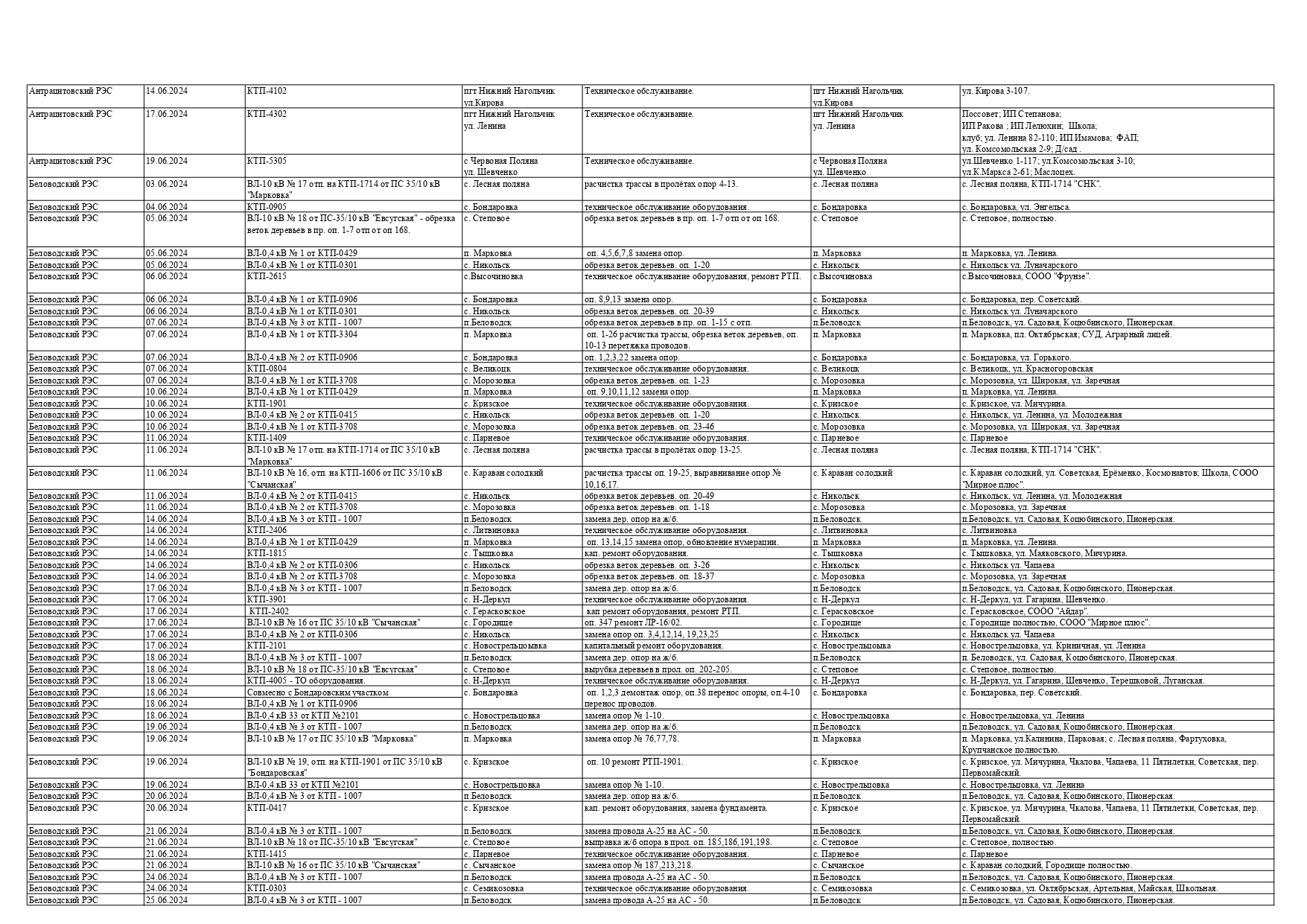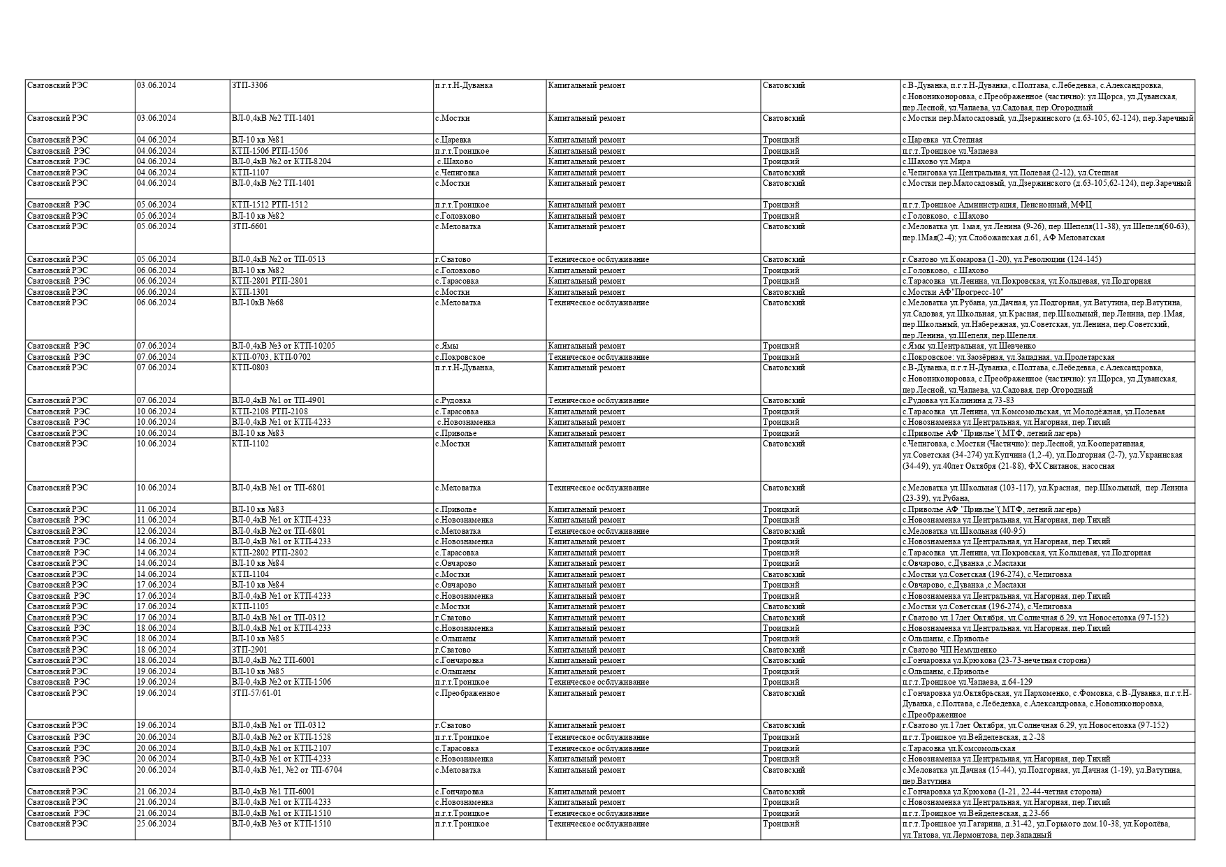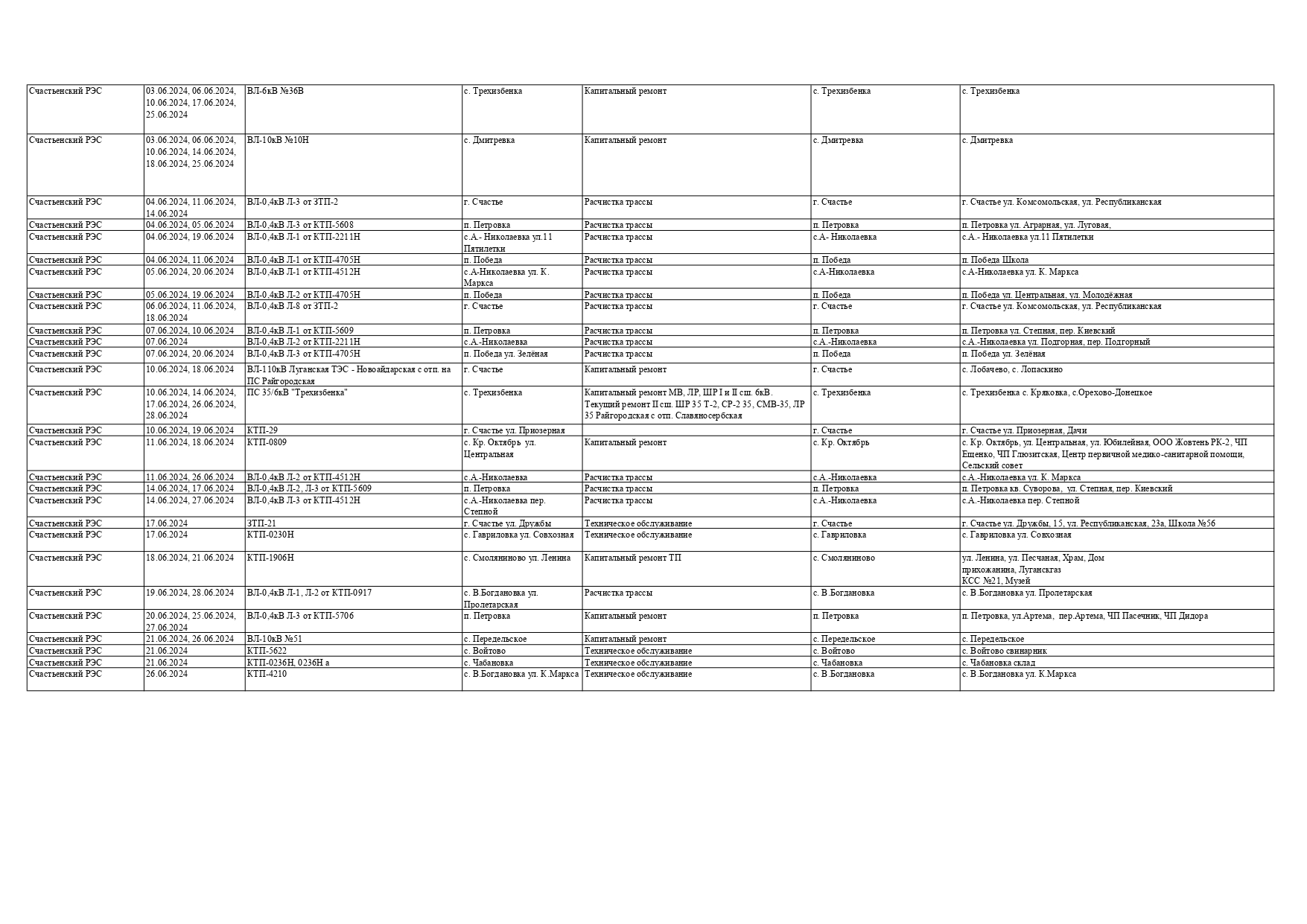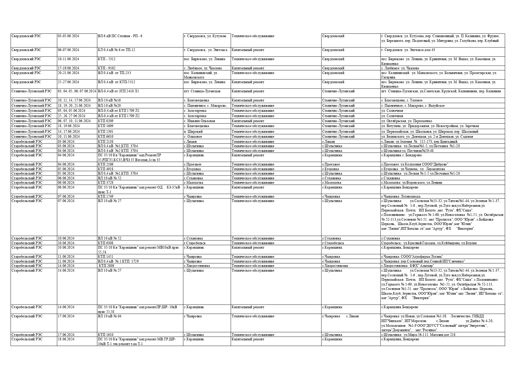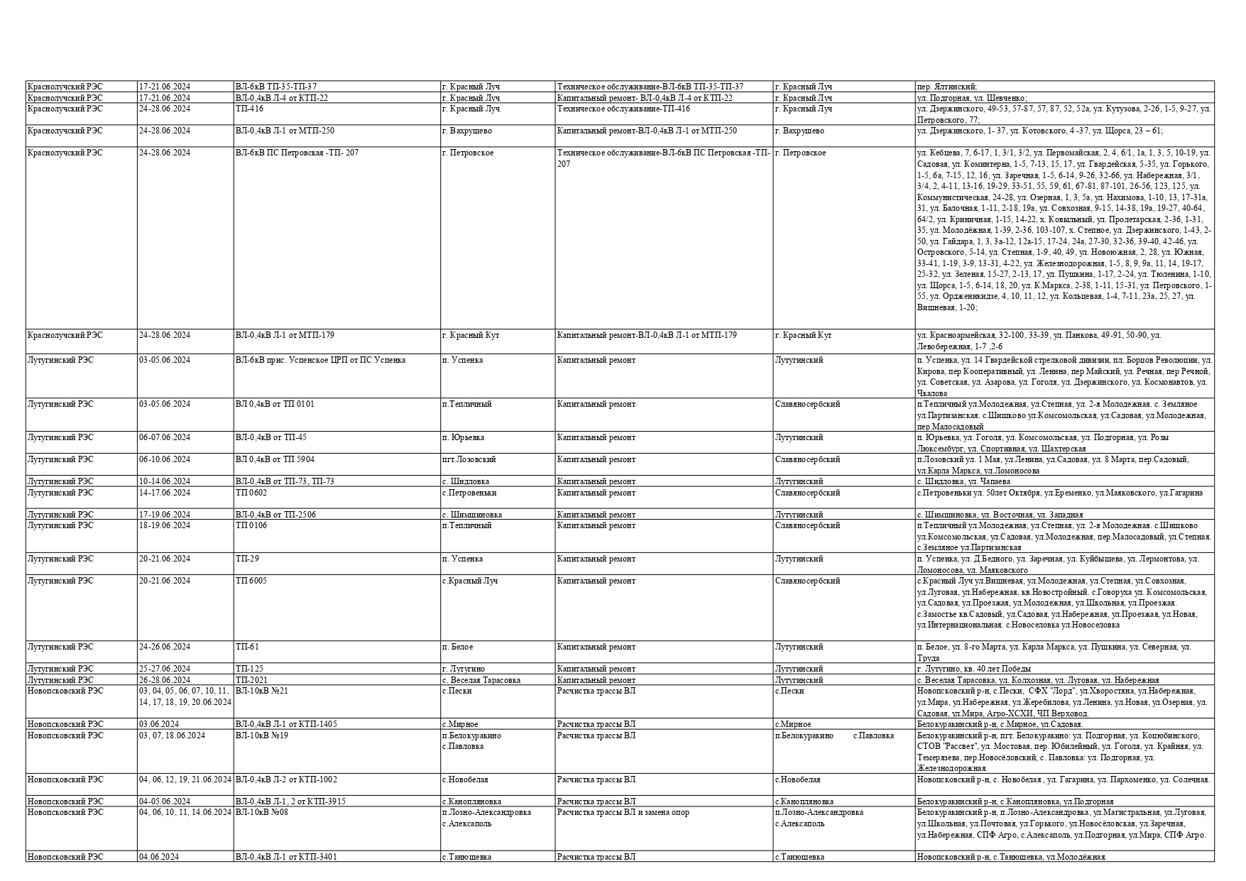 Оккупационная "администрация" области опубликовала на пропагандистский пабликах график запланированных отключений электроснабжения в июне для некоторых районов Луганска и "муниципальных округов ЛНР" из-за ремонтных работ на электрооборудовании, передает Час Пик.