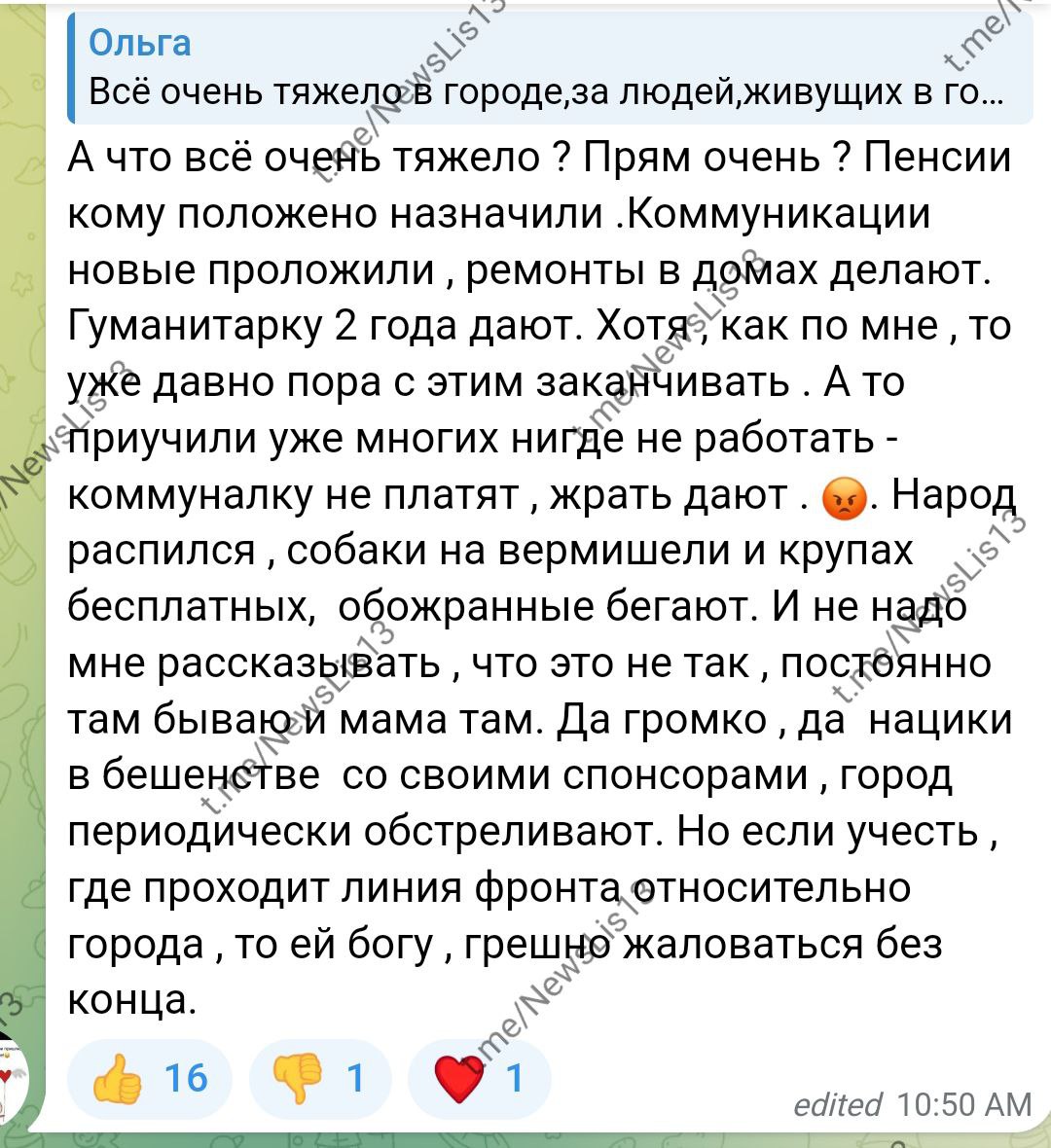 "Суровая реальность "прекрасной жизни" от людей, которые проживают в Лисичанске и говорят, что творится на самом деле", — пишут в сети.