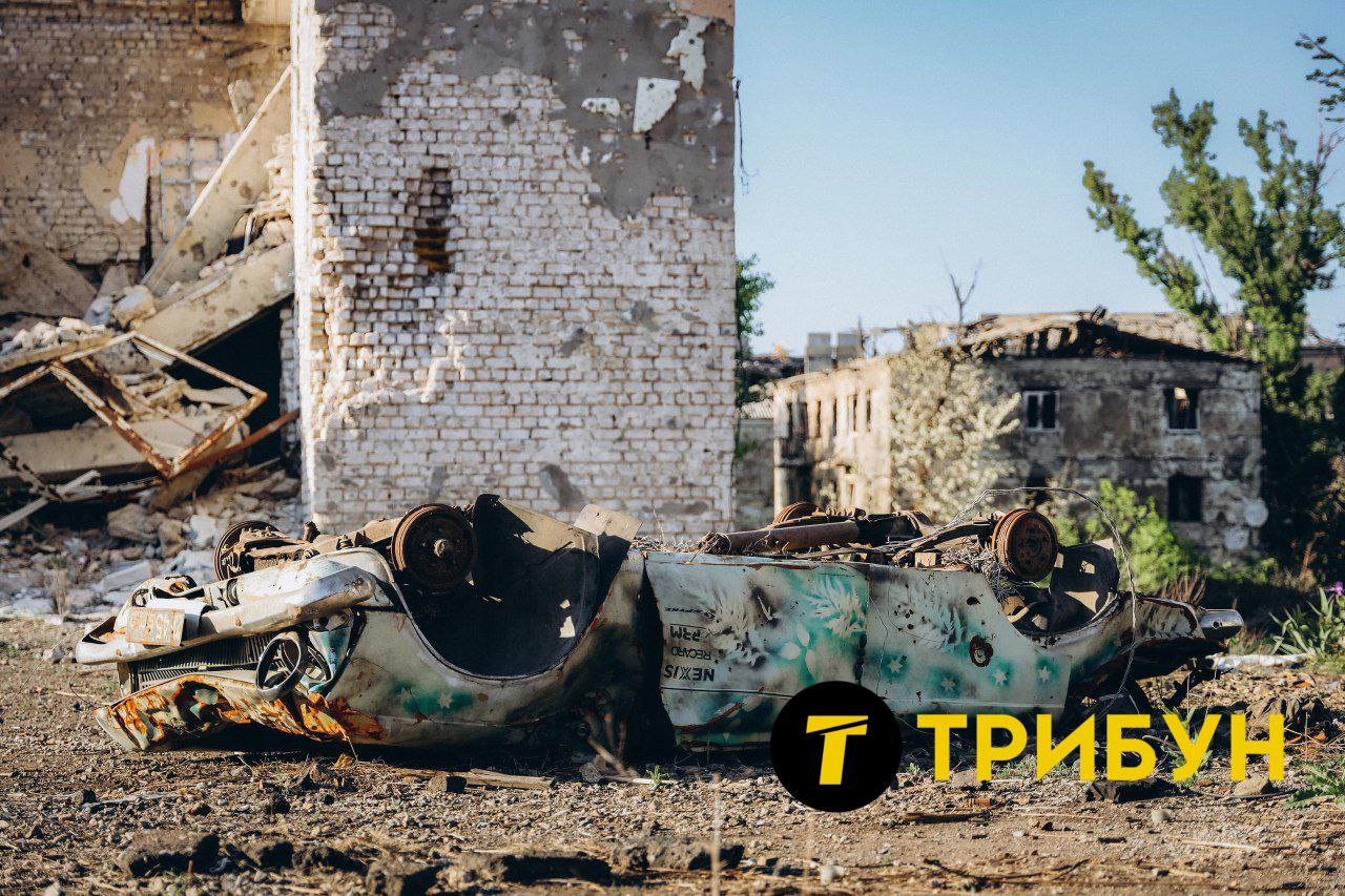 Поселок, который когда-то был домом для многих людей, теперь стоит в руинах, символизируя человеческие потери и несокрушимость духа тех, кто продолжает бороться за свою жизнь и будущее.