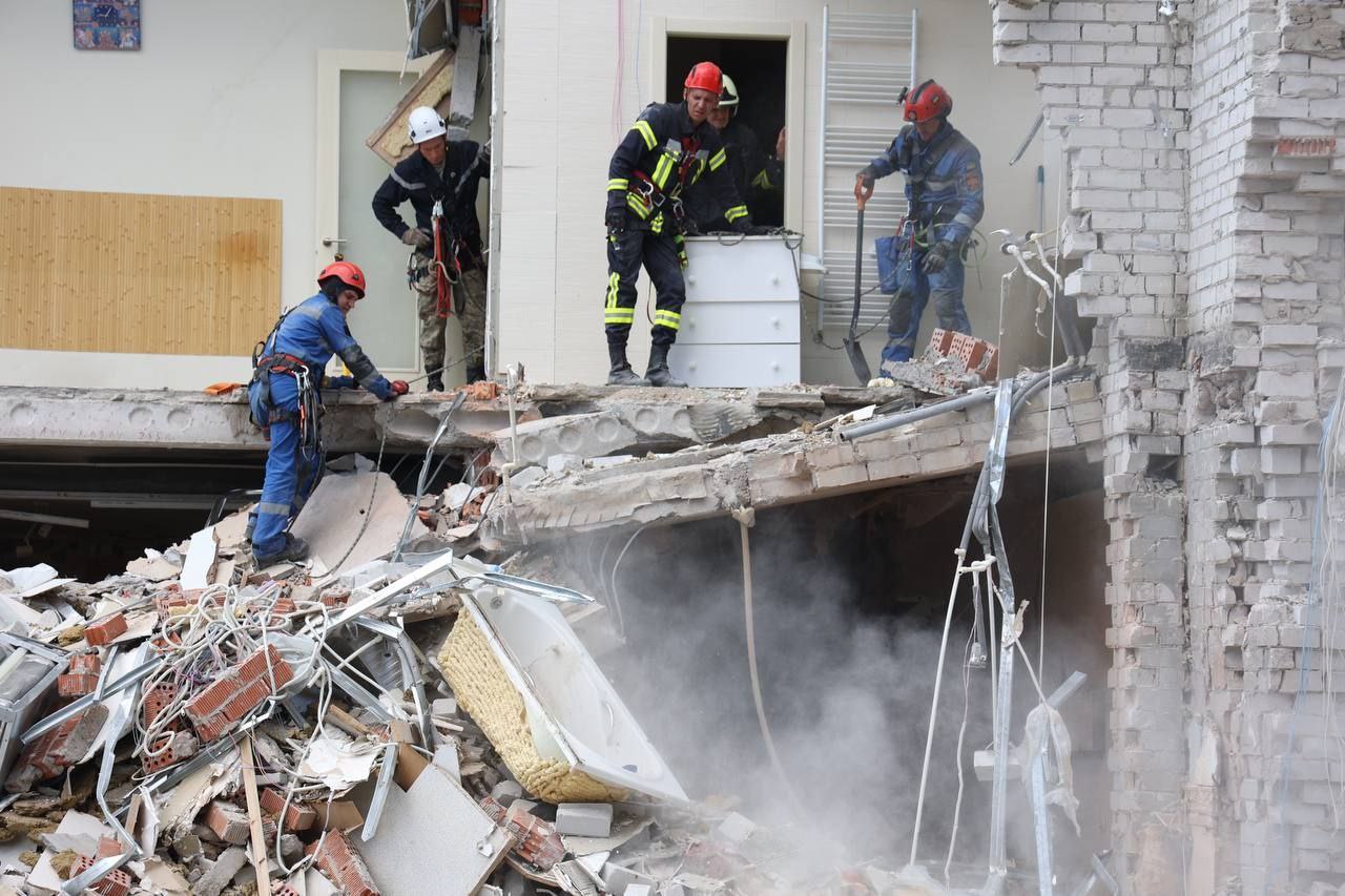 Поисково-спасательная операция продолжается. Спасатели разбирают перекрытия разрушенных этажей.
