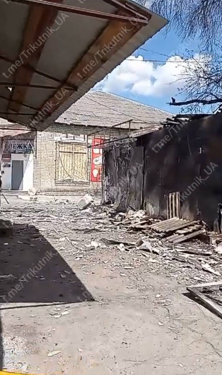 Удар нанес значительный ущерб рынку, где сгорело несколько киосков. На снимках видно, что местная торговая инфраструктура испытала некоторые разрушения: уничтожены торговые точки, повреждены и сгорели конструкции. Кроме этого, некоторые здания рядом также получили повреждения в результате взрывной волны и обломков снарядов, передает Час Пик.