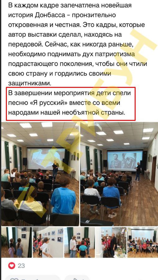 В музее города прошло мероприятие, в ходе которого детей заставили смотреть клип и петь песню "Я русский", о чем пропагандисты похвастались в сети.
