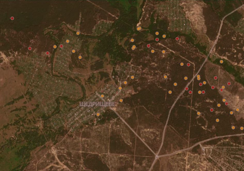На спутниковых снимках зафиксированы масштабы возгораний - огонь охватил обширные территории и продолжает распространяться. Информация о том, что из Щедрищево была организована эвакуация, отсутствует. Люди остались с огнем один на один.