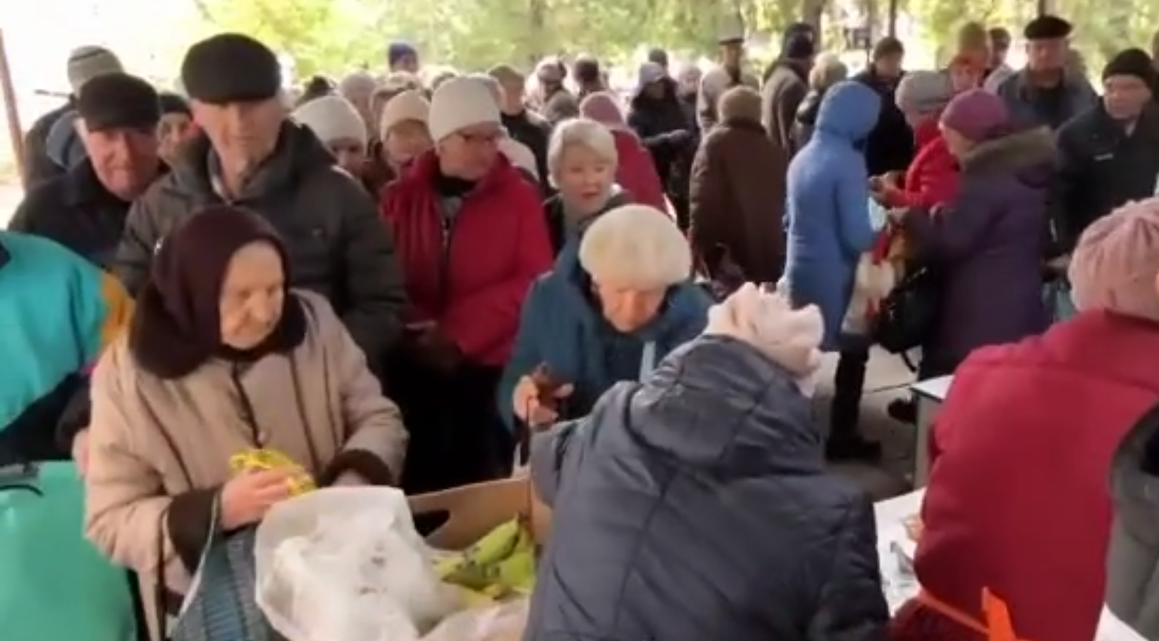 На видео видно, что большая часть очереди состоит из пожилых людей, которые, возможно, забыли о времени, когда не приходилось стоять с протянутой рукой за куском хлеба, передает Час Пик.