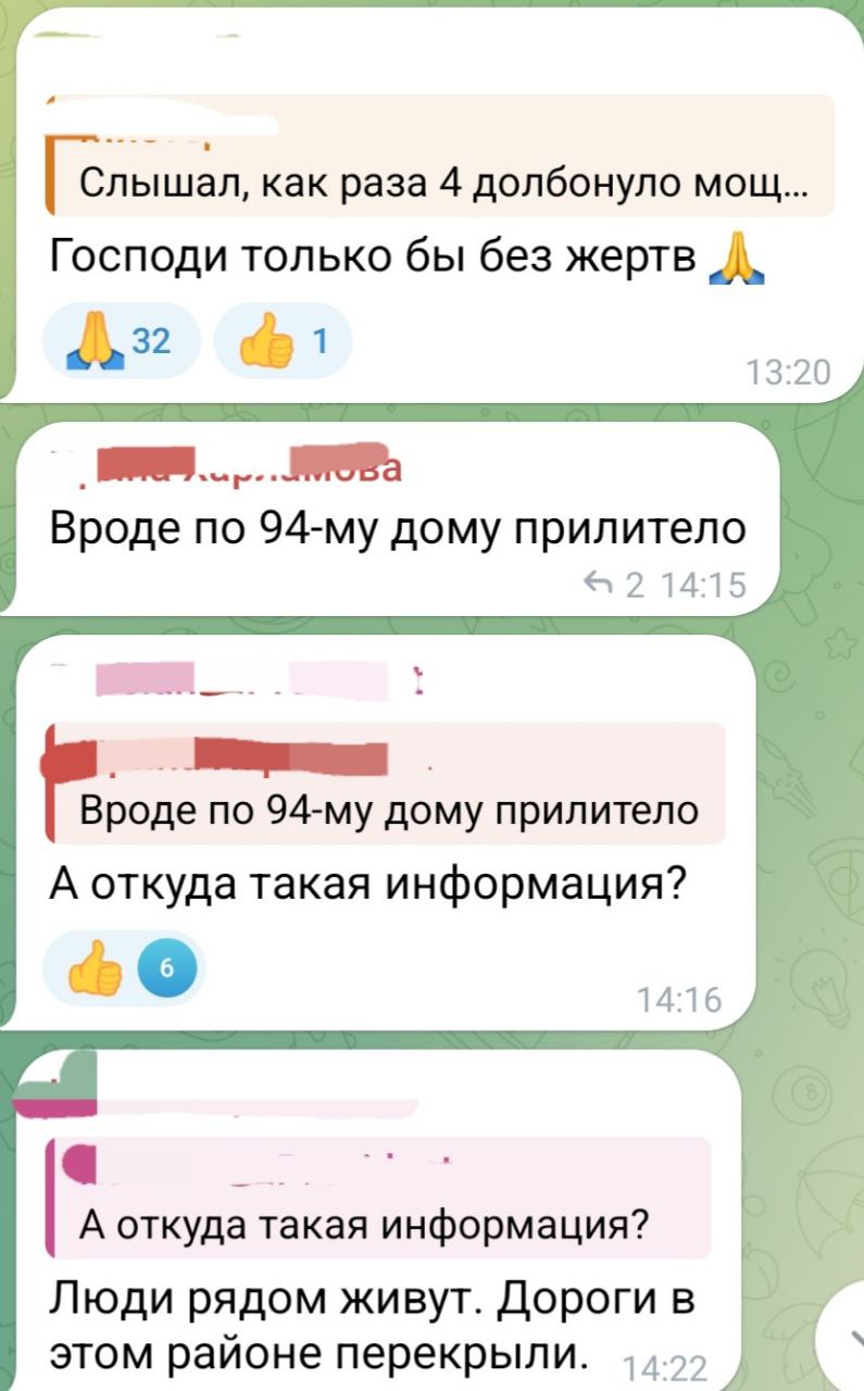 Свидетели рассказывают в оккупационных чатах, что около 13:30-13:40 в городе прогремели четыре мощных взрыва. Одно из попаданий зафиксировано в доме №94, расположенном на проспекте Победы со стороны ООО "Виктор".
