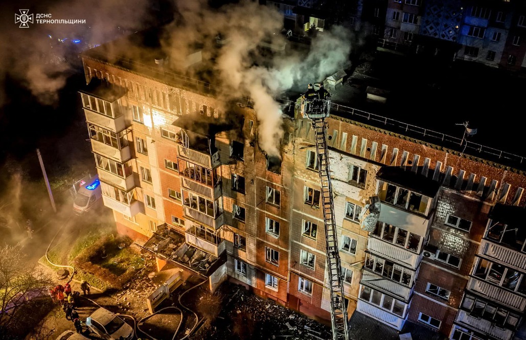 Российские оккупационные войска ударили "шахедами" по Тернополю. В результате ночной атаки поврежден многоквартирный жилой дом. Один человек погиб.