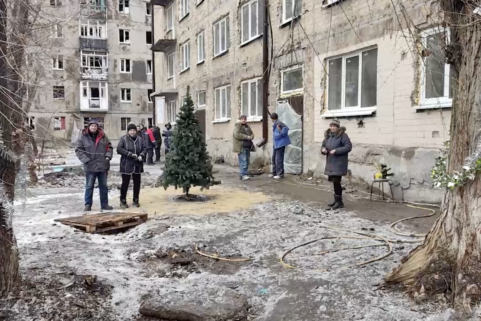 Местные жители выражают возмущение в социальных сетях, подчеркивая, что пластиковая елка и мандарины не решат проблемы, с которыми они сталкиваются ежедневно.