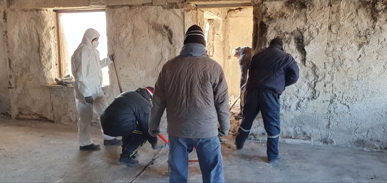 Снимки, датированные февралем 2025 года, демонстрируют помещение с голыми кирпичными и бетонными стенами, поврежденной штукатуркой и следами значительного износа. На них можно заметить разрушенные конструктивные элементы, а также серьезные повреждения несущих плит.