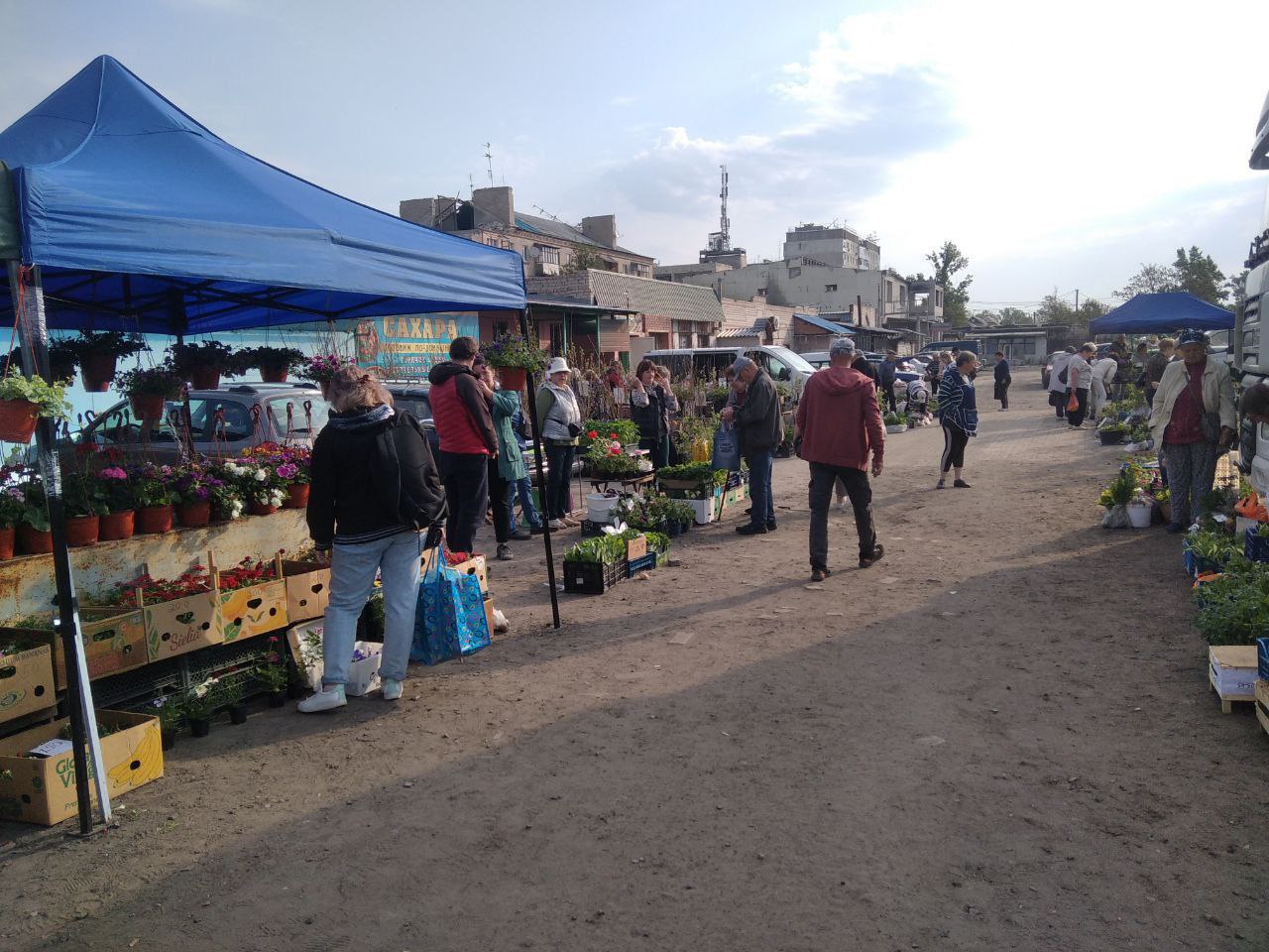 На отделах, где продаются продукты, цветы и рассада растений, посетители рынка, преимущественно люди старшего возраста.