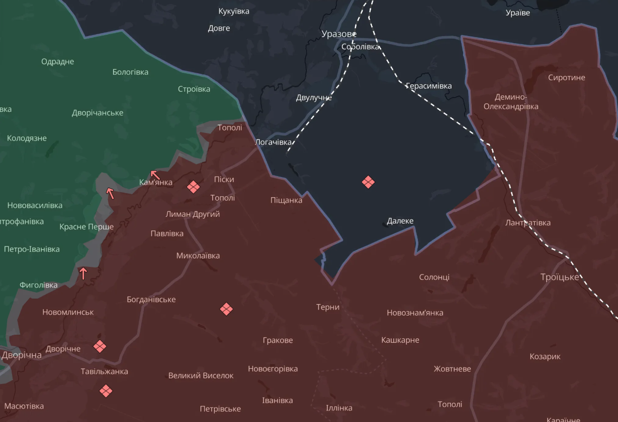 Согласно данным, враг сумел продвинуться в районе населённого пункта Каменка - это село входит в Двуречанскую громаду Купянского района Харьковской области. Второе зафиксированное направление - Белогоровка в Лисичанской городской громаде Луганской области.