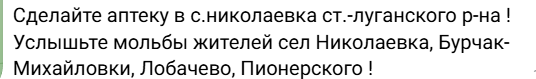 На фоне растущего недовольства населения и острого дефицита лекарств, так называемый "глава ЛНР" Леонид Пасечник обратился к Совету Федерации РФ с просьбой внести изменения в законодательство, которые позволили бы организовать мобильную аптечную торговлю в селах, расположенных вблизи линии фронта.