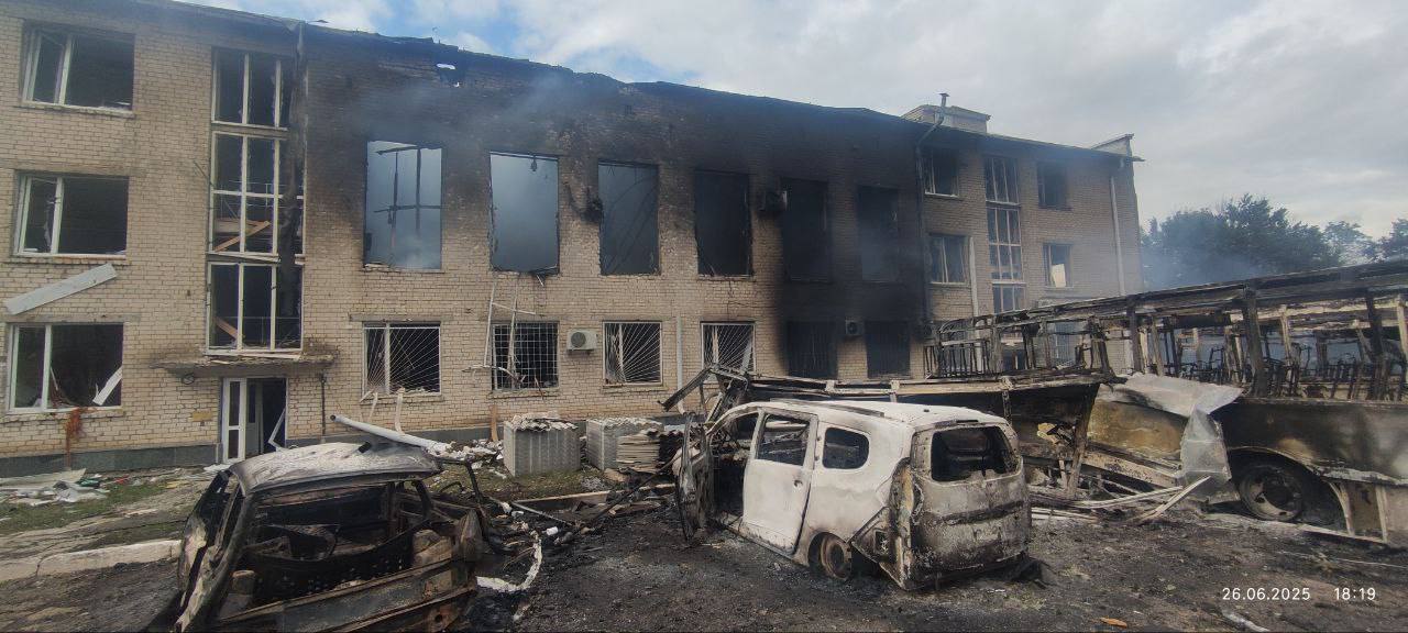 Местные Telegram-каналы пишут, что на здание было сброшено "больше десятка боеприпасов". В результате атаки в помещении вспыхнул пожар. Как заявили оккупанты, взрывами задело соседние жилые дома, повреждены крыши и остекление окон.