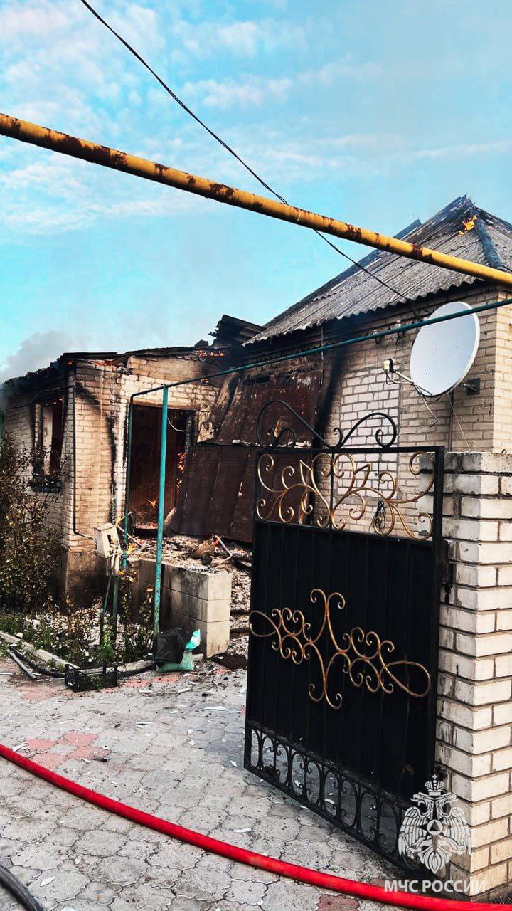 По их данным, возгорание произошло ночью. К месту вызова прибыли подразделения так называемой "63 пожарно-спасательной части МЧС России". К моменту прибытия спасателей пламя уже полностью охватило крышу дома и пристройки. Общая площадь возгорания составила более 160 квадратных метров.