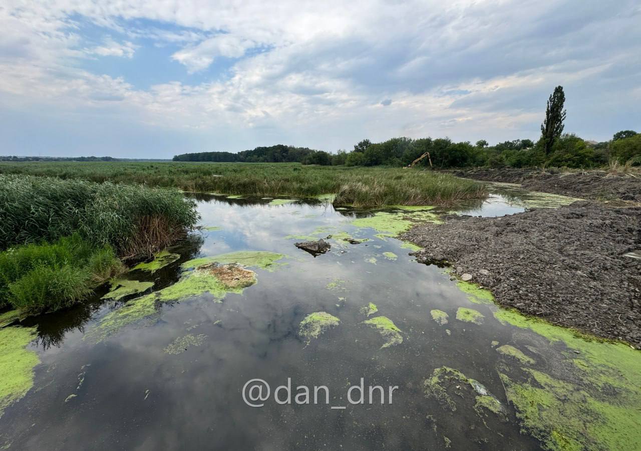 В частности, в Макеевском округе продолжаются работы по очистке реки Крынка от камыша и ила — реки, от которой зависит водоснабжение многих городов Донбасса. Работающий на месте машинист экскаватора рассказал, что проводит на участке утром и до позднего вечера.
