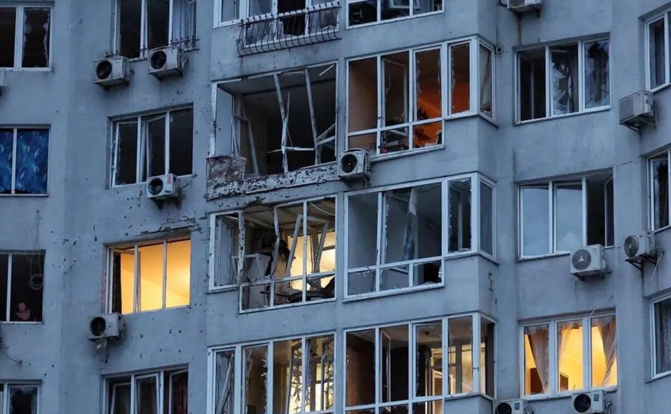 В результате атаки выбиты окна и повреждено остекление балконов с 3 по 11 этаж в одном из подъездов многоэтажки. Также окна вылетели и в других частях дома. Пострадал двор и припаркованные рядом с домом автомобили.