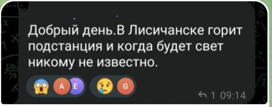 "Из-за атаки дронов повреждены линии электропередачи в Лисичанске. Поэтому нет света. На Южной в Рубежном — тоже темно", - пишут оккупационные паблики.
