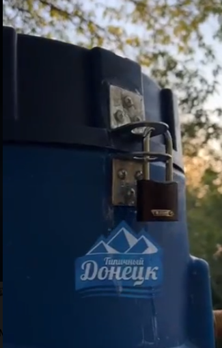 Один из местных активистов показал фото с замками на крышках резервуаров и объяснил, что это единственный способ хоть как-то защитить воду: "Подбрасывают шланг в бочку и просто высасывают ее себе. Пришлось придумать такую схему. Понимаю, что она не очень надежная, но это хоть какая-то мера защиты от мародеров".