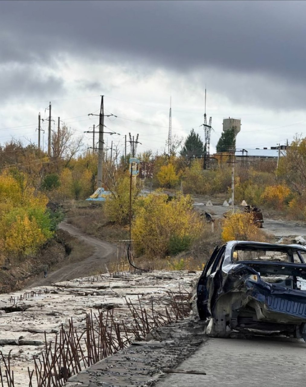 В округе абсолютная пустота. Мост, который до оккупации был оживленным, теперь является символом боевых действий и разрухи.
