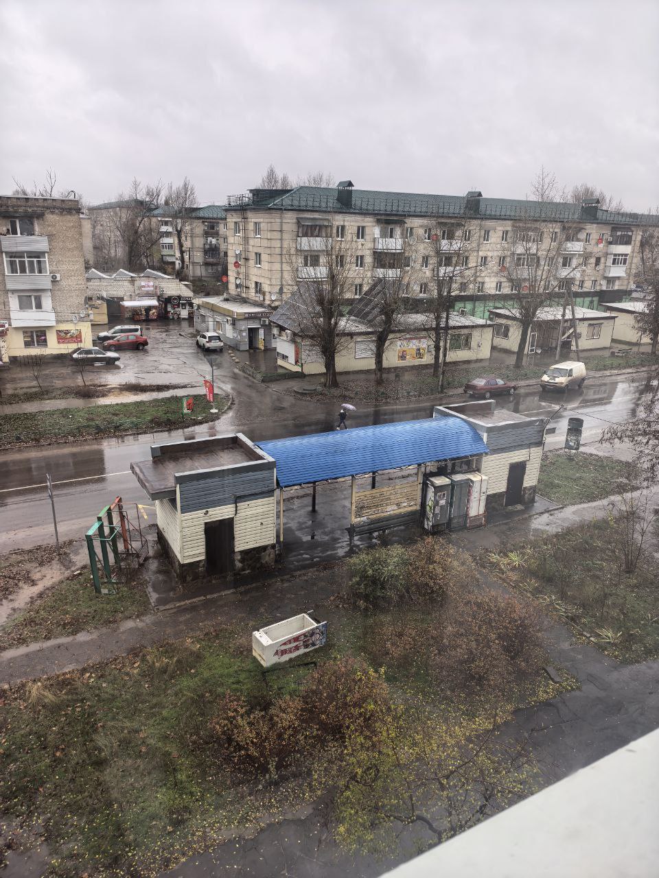 Фото были сделаны совсем недавно - в ноябре текущего года. Как можно заметить, людей в городе мало, автомобильное движение практически отсутствует. Дождливая погода как будто подчеркивает заброшенность оккупированного города.