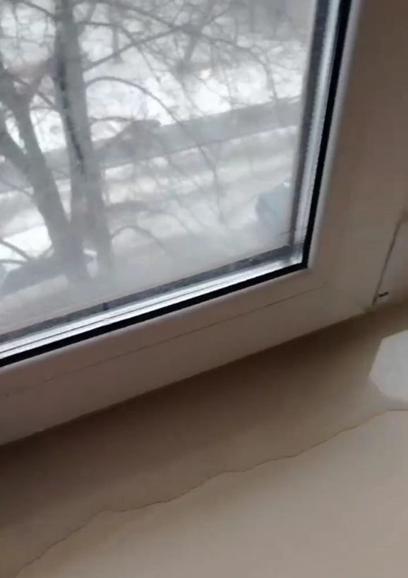 "К кому обращаться? Поставили новые окна, но в зале из-под откосов течет вода. Шоссе строителей, 5А", - говорится в подписи к фото.