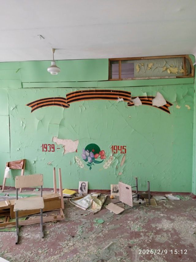 Фото были сделаны в феврале 2026 года. Как можно заметить, здание получило повреждения и было просто заброшено. О восстановлении речи не идет. Впрочем, даже дома россияне не восстанавливают. А школы уж тем более.